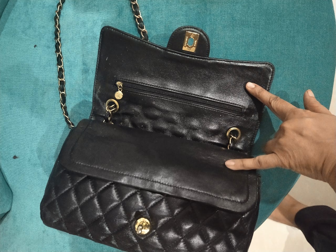 Preloved 100% Authentic Coded Gorgeous Chanel Black Caviar Maxi Double Flap Bag. Outside awesome condition, no visible use marks. Inside washed once because of inside red peel off.