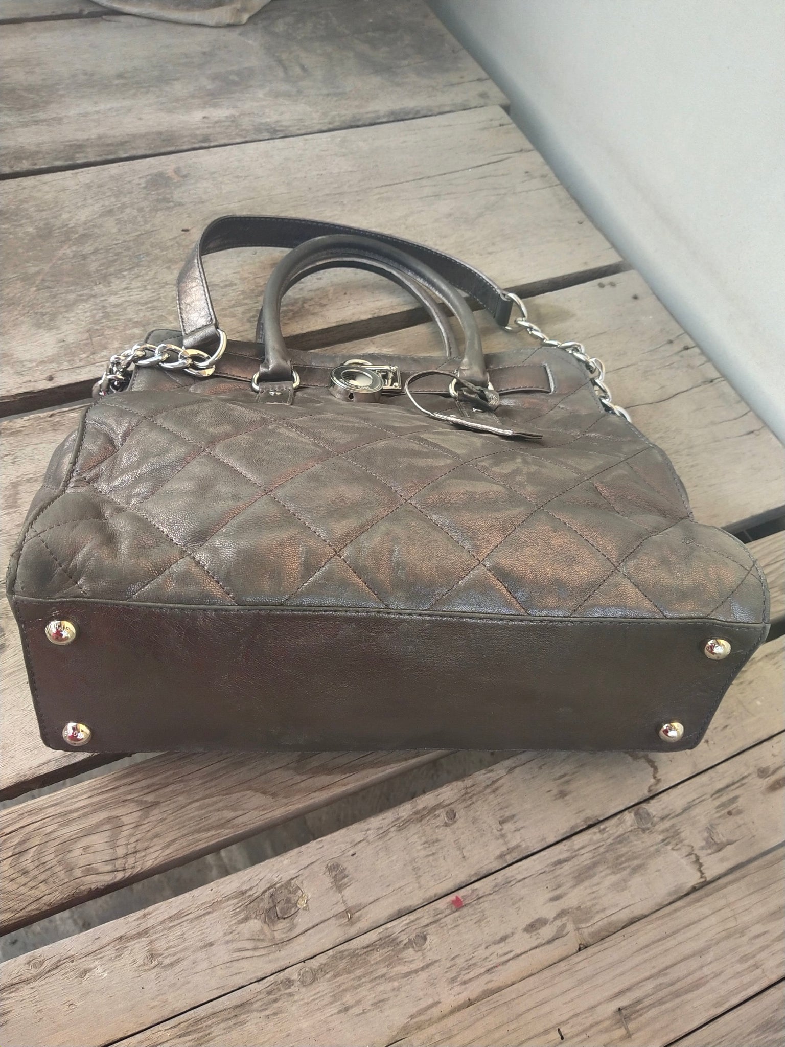 Preloved Authentic Coded Gently Used Mich. ael Ko rs Large NS Quilted Leather Hamilton Tote. Inside condition is awesome. The outside has some signs of use at bottom and hadles area but is still clean and nice (please check outer pics carefully).