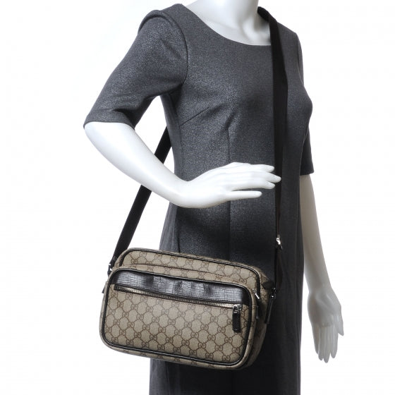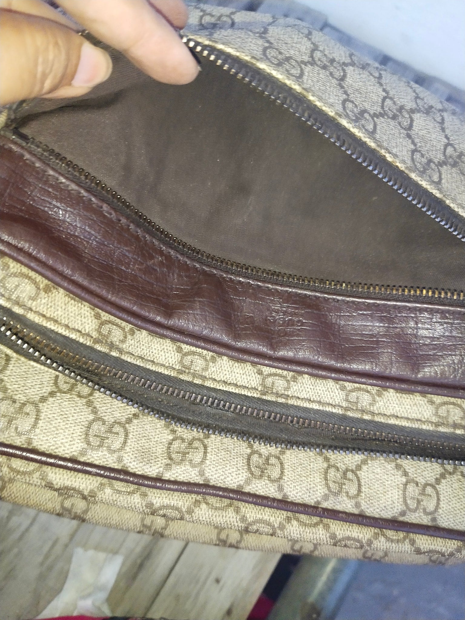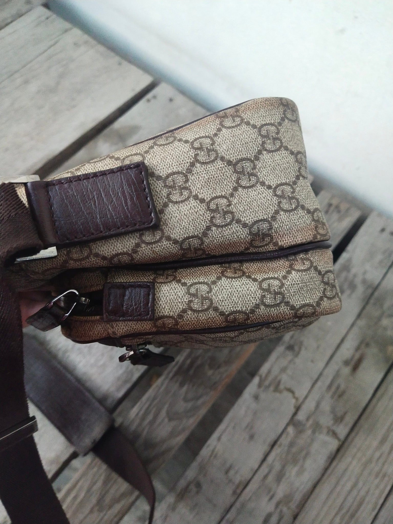 Preloved Authentic Coded GentlyUsed Gucci Gg Monogram 114531 205011 Brown Coated Canvas Cross Body Bag. This Bag is the Large Reporter Bag in Coated Canvas(PVC) in brown long strap Pre-owned Very Good Condition. Exterior: Minor signs of wear, shows some color transfer on the canvas near brown piping. Inside condition is awesome.
